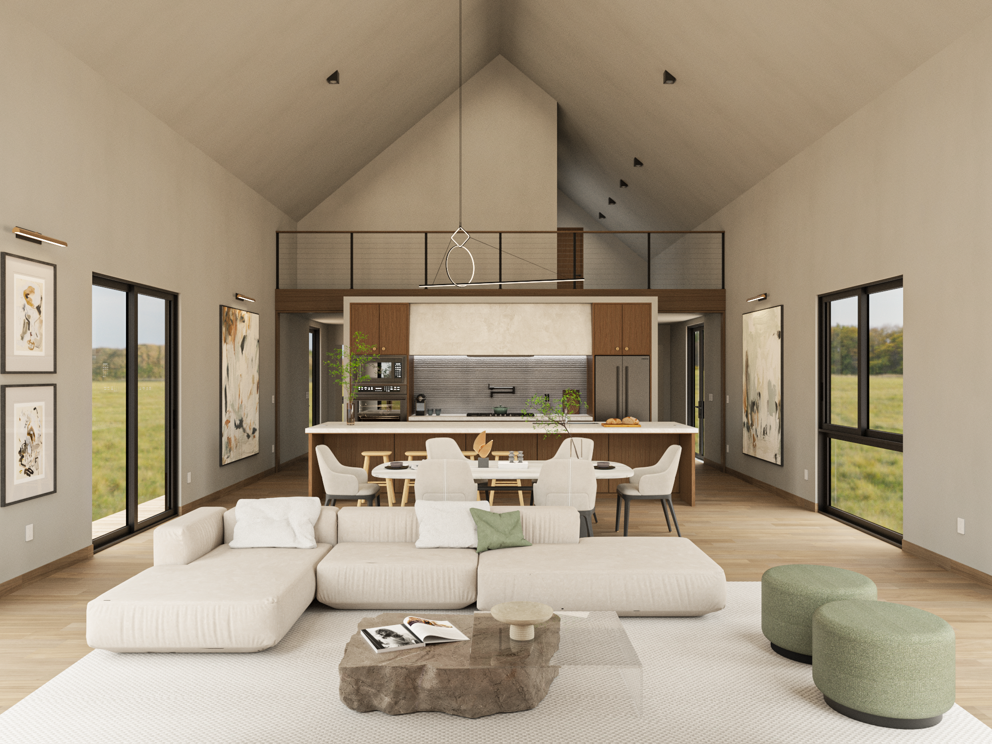 With its generous glazing, quiet detailing, and easy access to the long sunlit deck, the living area is designed for relaxed gathering and effortless indoor-outdoor flow.