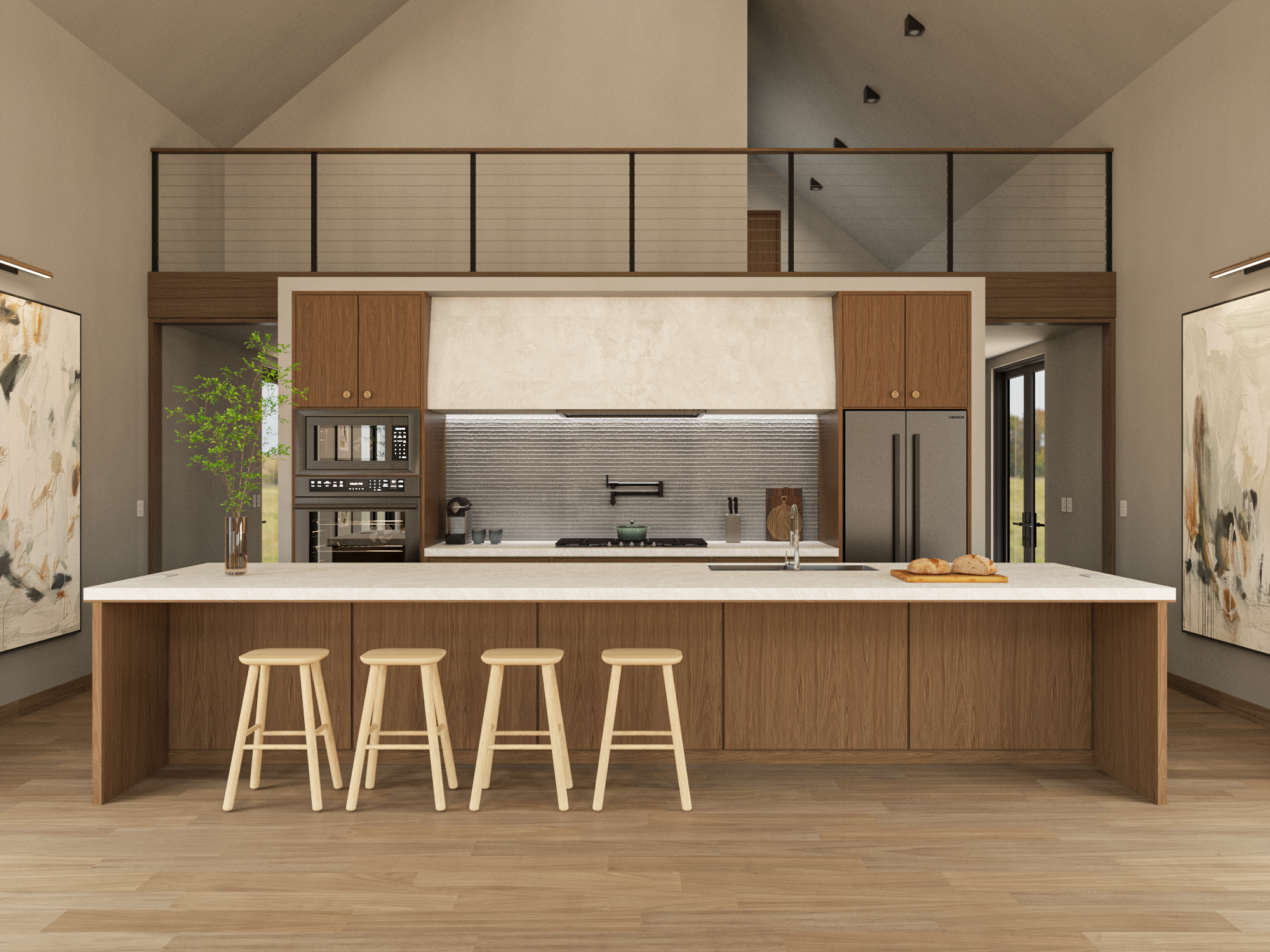 Soft finishes, simple lines, and views to the trees turn the master bedroom into a private retreat that feels both elevated and deeply restful.