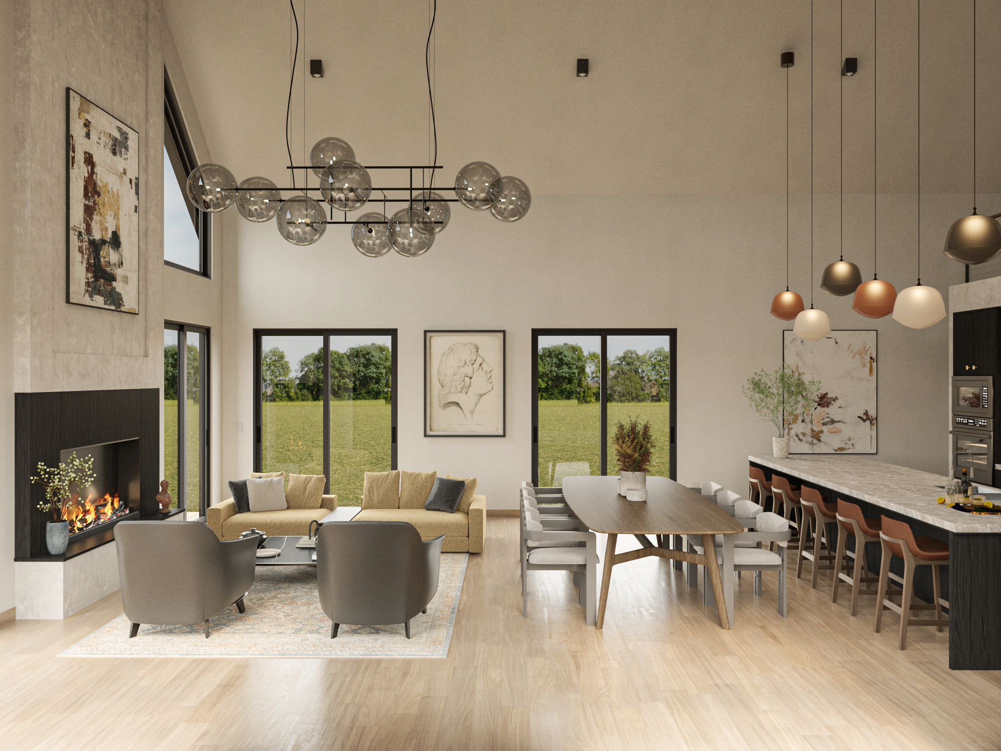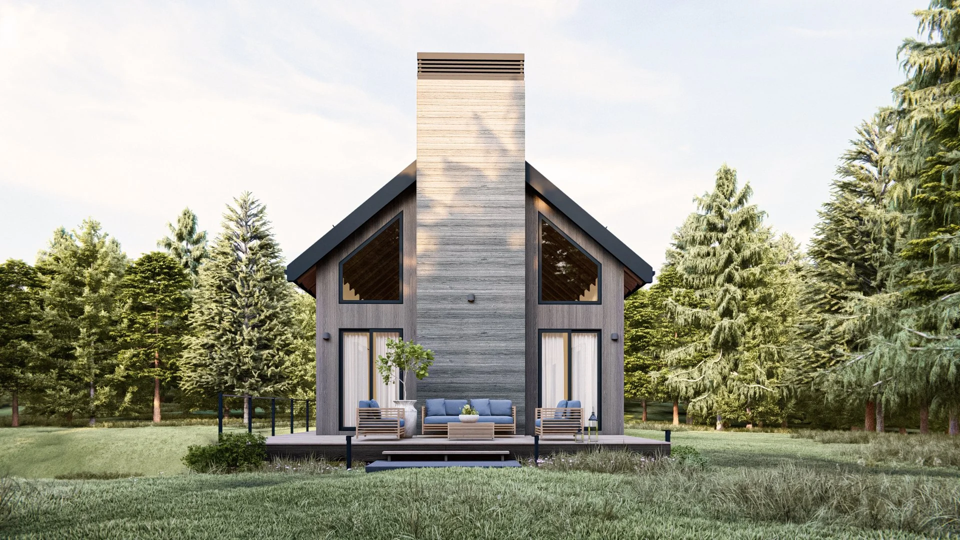 Perched gracefully above the landscape, this elevated gable-roof home maximizes views with sweeping exterior space, large windows, and a walk-out lower level that expands living and entertaining options. The blend of sustainable siding and bold architectural elements creates a striking form that harmonizes with the forested backdrop. Whether enjoyed as a full-time residence or seasonal escape, this design brings modern luxury to the heart of Vermont’s beauty.