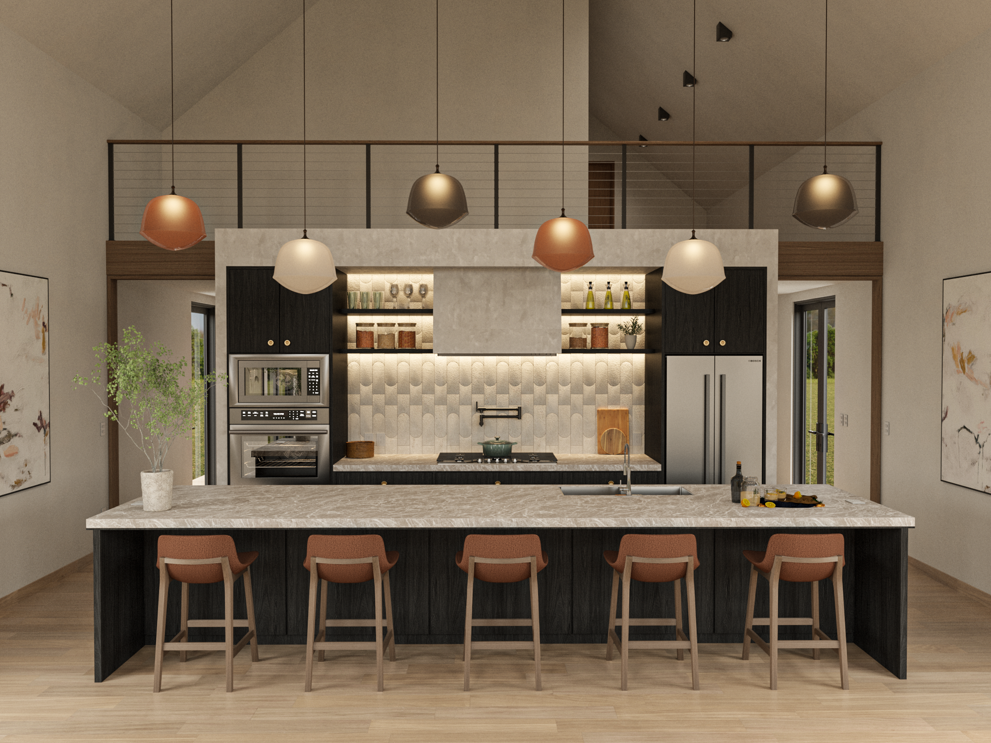 Oriented toward sweeping exterior spaces and the walk-out lower level, the living area is designed for effortless entertaining and everyday relaxation with a view.